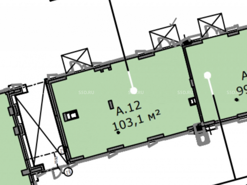 Общая площадь 103.1 м². 1-й этаж жилого дома. 2 отдельных входа с улицы. Высота потолков более 5 м. Все центральные коммуникации. Панорамное остекление. Возможность организации рекламной вывески.