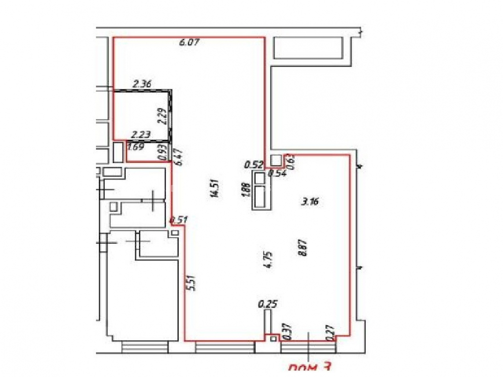 Вдоль помещения активный пешеходный трафик.