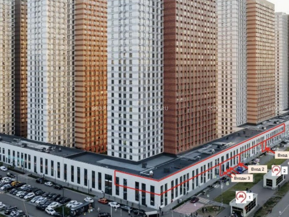2-й этаж стилобатной части жилого дома. 1-я линия. Открытая планировка. Витринное остекление. Зальная планировка.