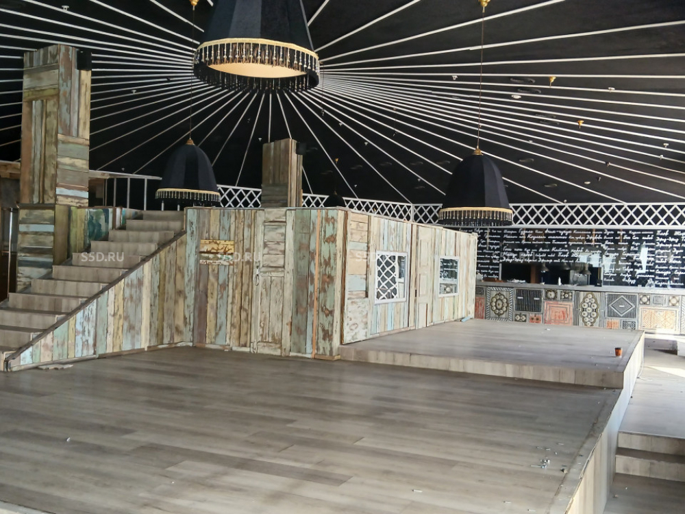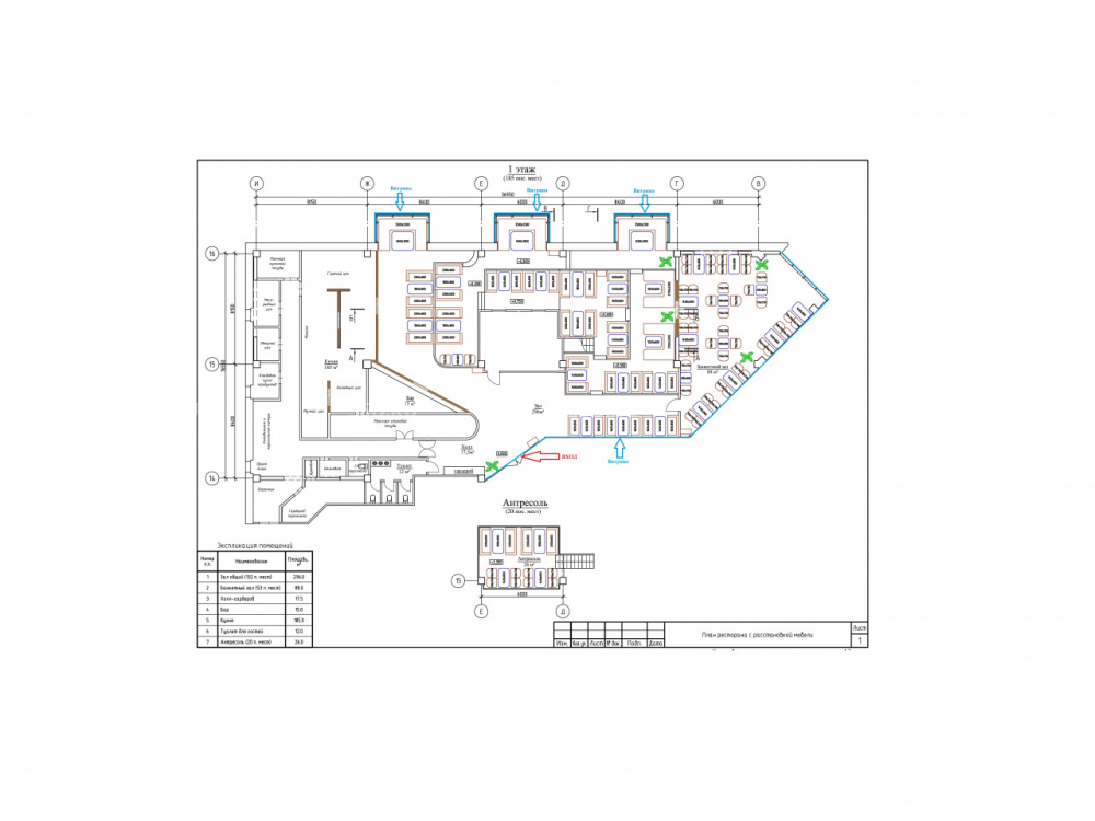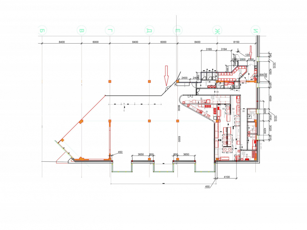 Площадь: 645 кв.м. 3 этаж. Электричество – 300 кВт. Вентиляция общеобменная приточная – 24 000 куб.м. Вентиляция общеобменная вытяжка – 4 000 куб.м. Вентиляция производственная вытяжка – 8 000 куб.м. Вентиляция производственная вытяжка (мангал, тандыр) – 3 200 куб.м. Кондиционирование – центральное d40, 32 кВт. Водоснабжение: ГВС – d40, 5Атм; ХВС – d40, 5 Атм. Канализация: К1, К3. Имеется подземная парковка на 300 м/м.