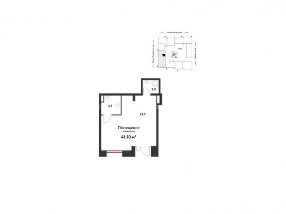 Технические характеристики: общая площадь 41,1 кв.м. • первый этаж жилого 9 этажного дома • отдельный вход на внутренней стороне ЖК• • высота потолков 4,25 метра • панорамные окна.