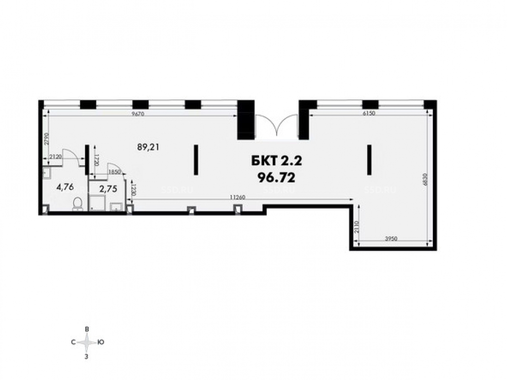 Общая площадь: 96.7 м2