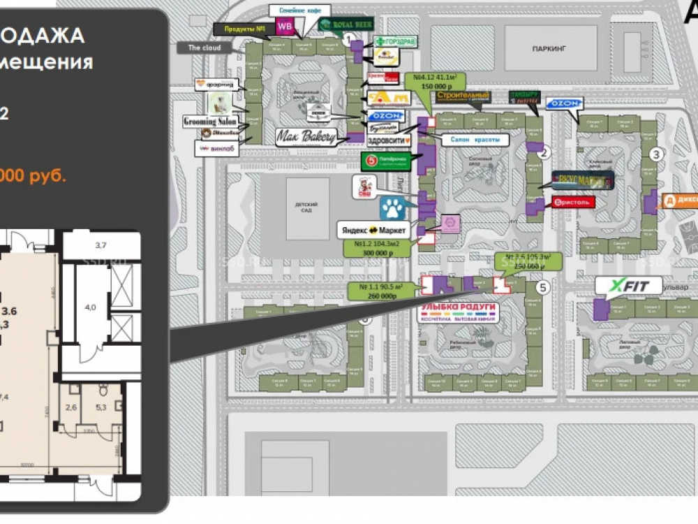 Торговое окружение: развитая инфраструктура района: супермаркеты, аптеки, кафе, медицинские и образовательные учреждения