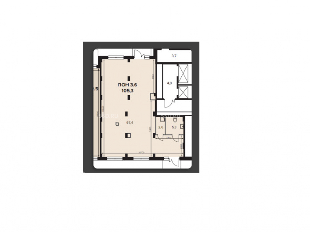 Общая площадь: 105.3 м2