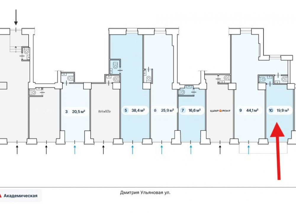 Москва, ЮЗАО. Аренда торгового помещения 19,9 м2, на 1-м этаже 5-этажного жилого дома, находящегося по адресу: ул. Дмитрия Ульянова, 10/1к1. В 5 минутах пешком до станции метро "Академическая". Отличная пешеходная и транспортная доступность. В непосредственной близости пешеходный переход и остановка общественного транспорта.