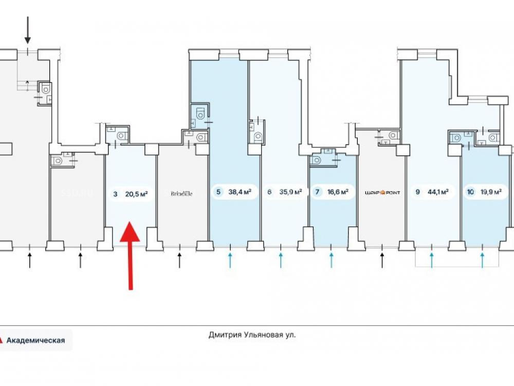 Москва, ЮЗАО. Аренда торгового помещения 20,5 м2, на 1-м этаже 5-этажного жилого дома, находящегося по адресу: ул. Дмитрия Ульянова, 10/1к1. В 5 минутах пешком до станции метро "Академическая". Отличная пешеходная и транспортная доступность. В непосредственной близости пешеходный переход и остановка общественного транспорта.