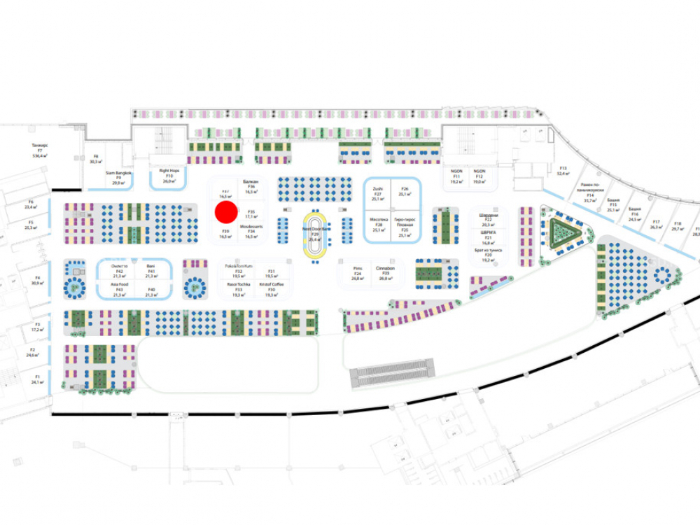 Торговое окружение: Кухни мира, мармелад, бутики одежды, спортивное питание