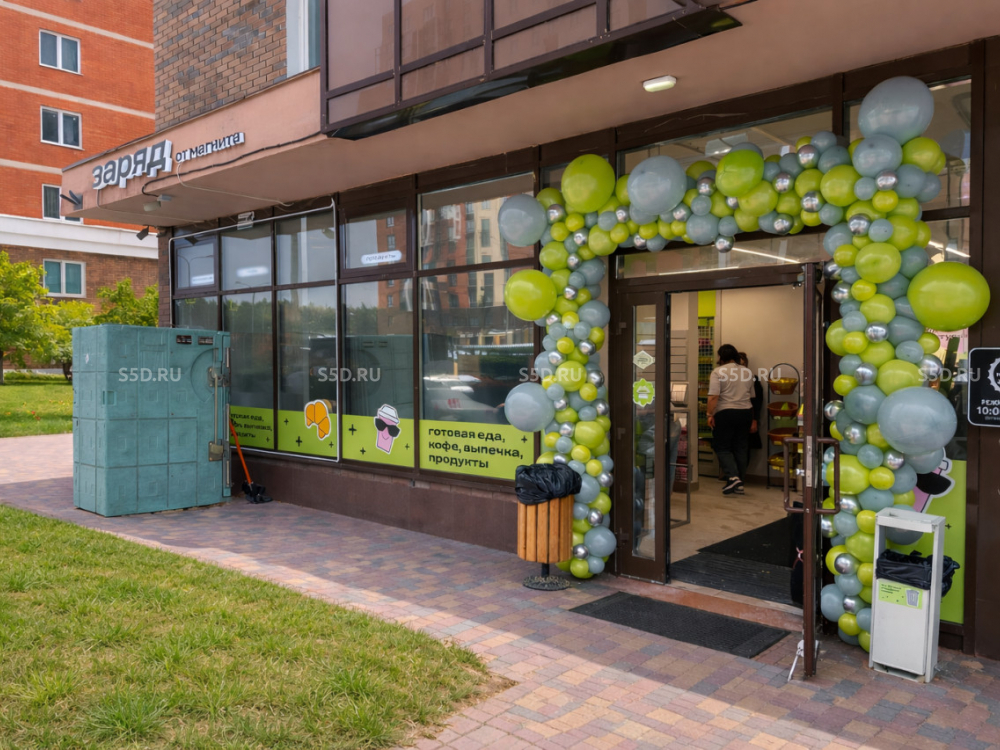 Арендатор - Магнит "Заряд", новый формат с большим количеством касс самообслуживания, отличной выкладкой, акцентом на готовую еду.