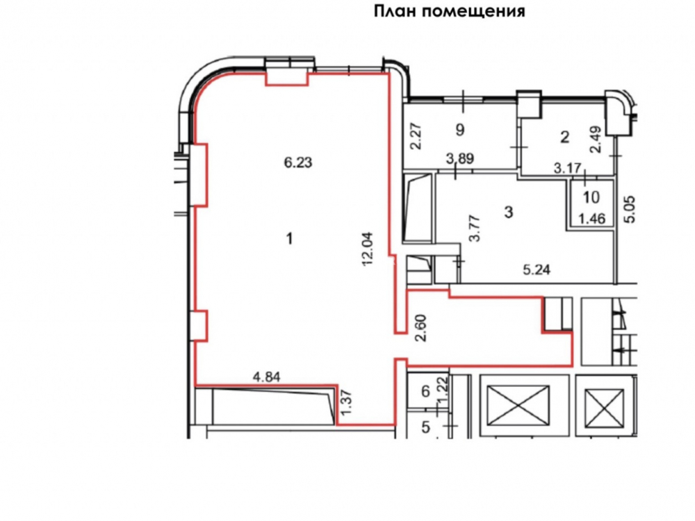1-й этаж жилого дома. Общая площадь - 84.9 м². Отдельный вход с улицы. Высота потолков 4.8 м. Витринное остекление. Все центральные коммуникации.