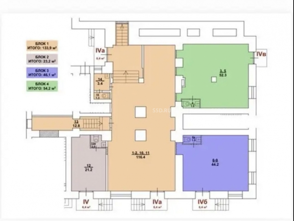 Общая площадь: 250 м² (возможна аренда части).