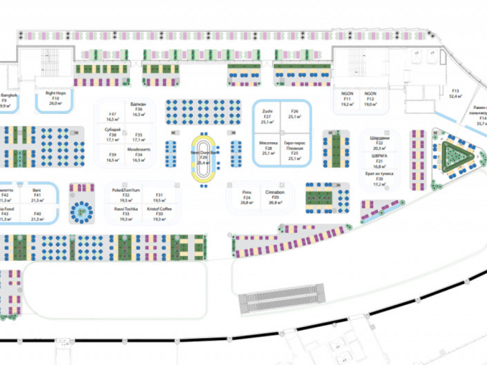 Торговое окружение: Кухни мира, мармелад, бутики одежды, спортивное питание