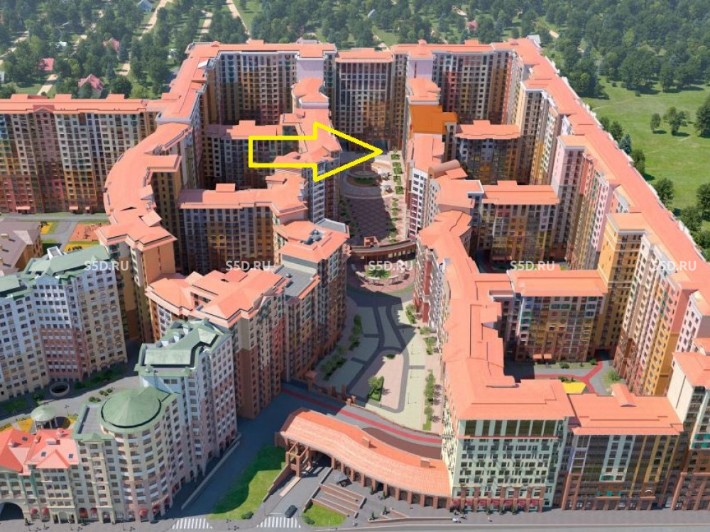 ЖК состоит из 5 монолитных многосекционных корпусов переменной этажности на 7 000 квартир. Помещение расположено на центральной прогулочной аллее с фонтаном. Дом заселен, все квартиры сдавались с отделкой.