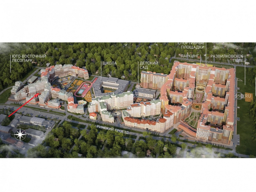 Римский квартал удачно расположен к югу от столицы всего в 2 км от МКАД по Каширскому или Бесединскому шоссе.