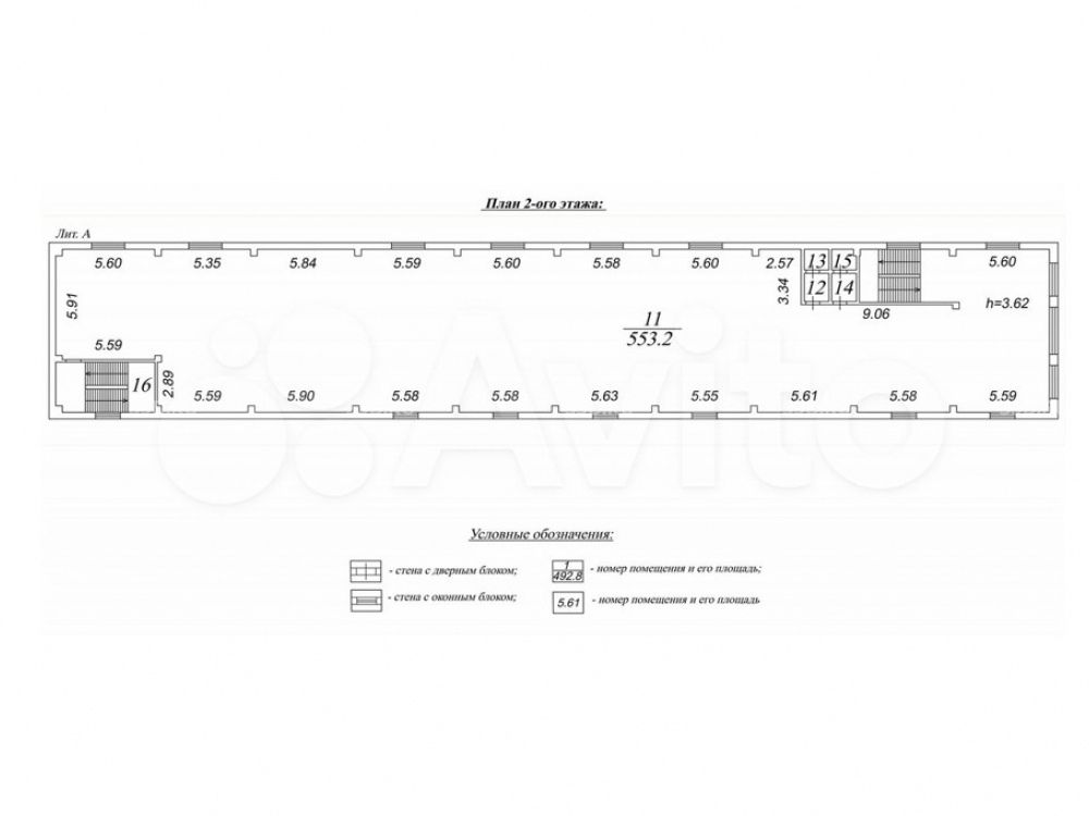 высота потолков 3,6 м;
