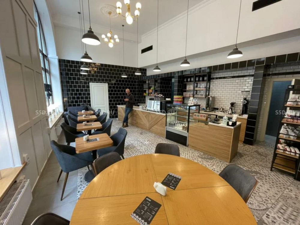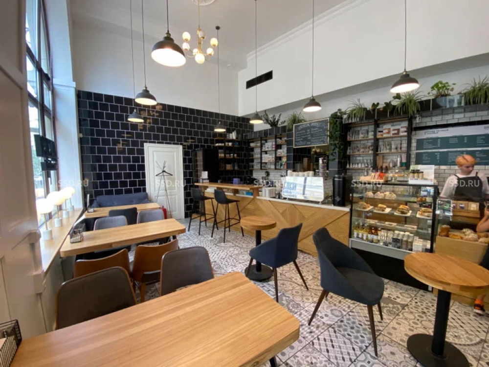 Высота потолков 6 м. Витринные окна. Большой зал и подсобные помещения. Электрическая мощность 90 кВт.