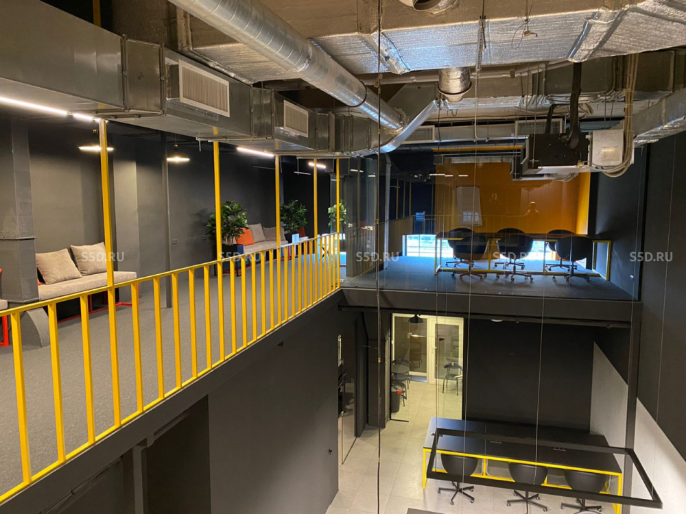 Общая площадь 350 кв.м. (фактическая 500 кв.м за счёт помещений антресоли), 1 этаж + антресоль. 3 изолированных зала, 3 входа (2 из лифтового холла 1-го этажа + дополнительный с автоматическими рольставнями с другой стороны здания). Открытая зальная планировка, помещения с дорогим дизайнерским ремонтом. Высота потолков 3.5 м. Все коммуникации центральные. Выделенная мощность электроэнергии 60 кВт. Свободный доступ 24/7. Охраняемая территория. Паркинг: наземный на 50 м/м на территории, подземный на 100 м/м.