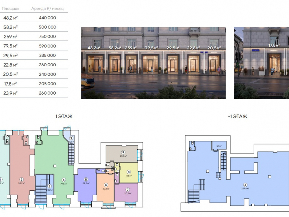 Стоимость 1 м2 - 11 517 рублей/месяц