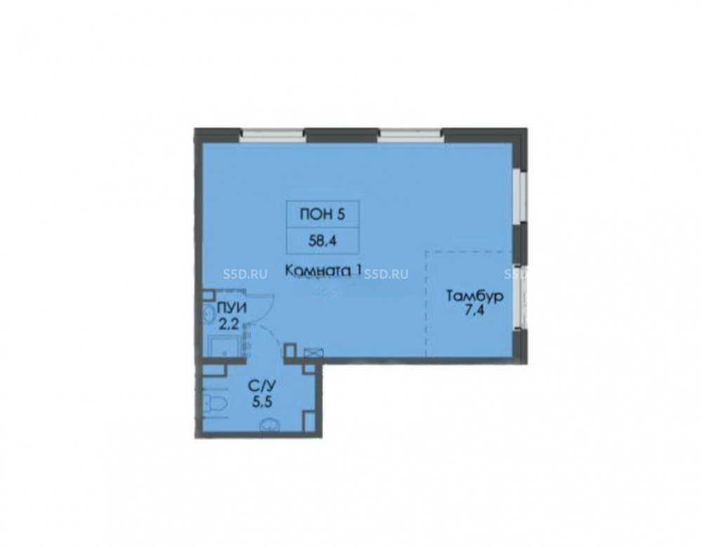 Общая площадь: 58.4 м2