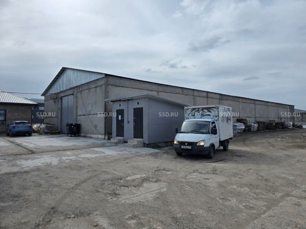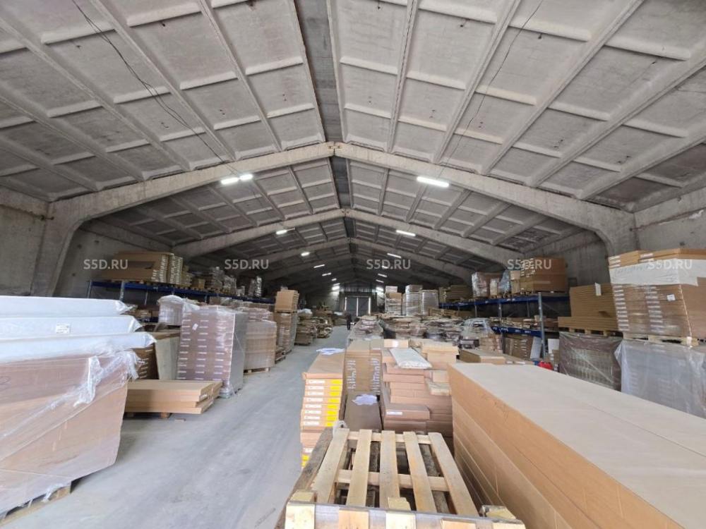 Общая площадь склада - 975.4 м2, год постройки - 1988, тип конструкции - ж/б плиты и ж/б перекрытия, высота к коньке - 7.5 м, по стене - 5.4 м, ворота - 4*3.5 м - 2 шт (с торцов), антипыль, сухой;