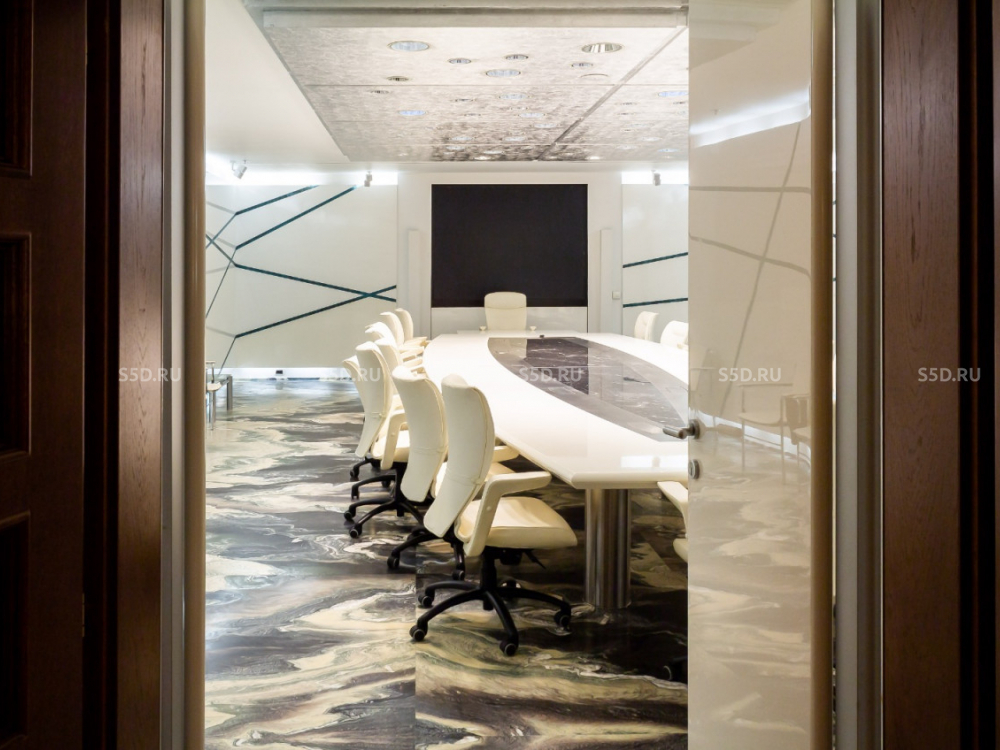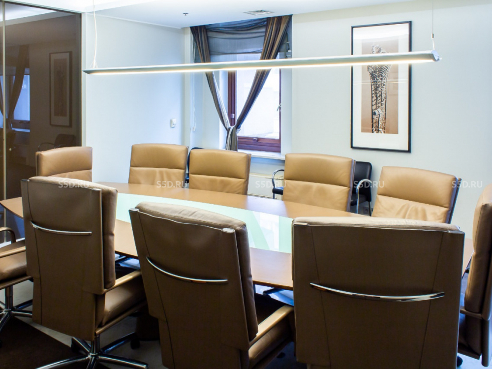 7 этажей офисных помещений со смешанным ремонтом и планировками. Конференц-залы и переговорные комнаты с дизайнерским ремонтом, укомплектованные мебелью. Помещения для руководства с панорамными видами из окон, с персональными лифтами. В атриуме расположен балкон с потенциальным местом для кафе для сотрудников.