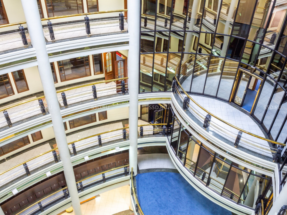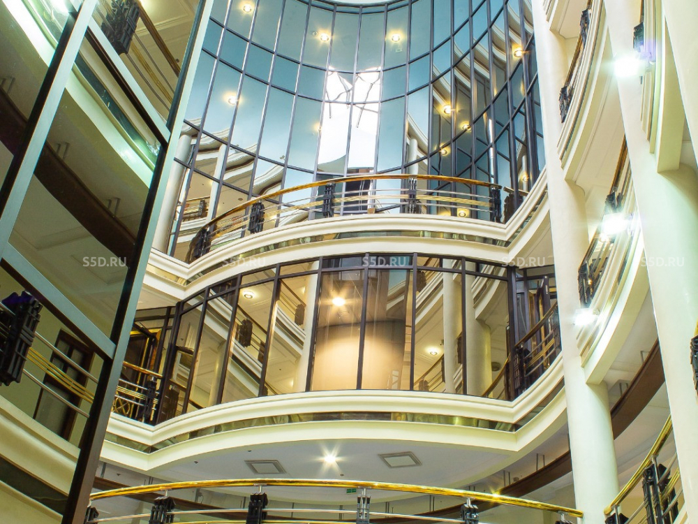 Здание обладает представительским лобби и просторным атриумом с панорамными лифтами.