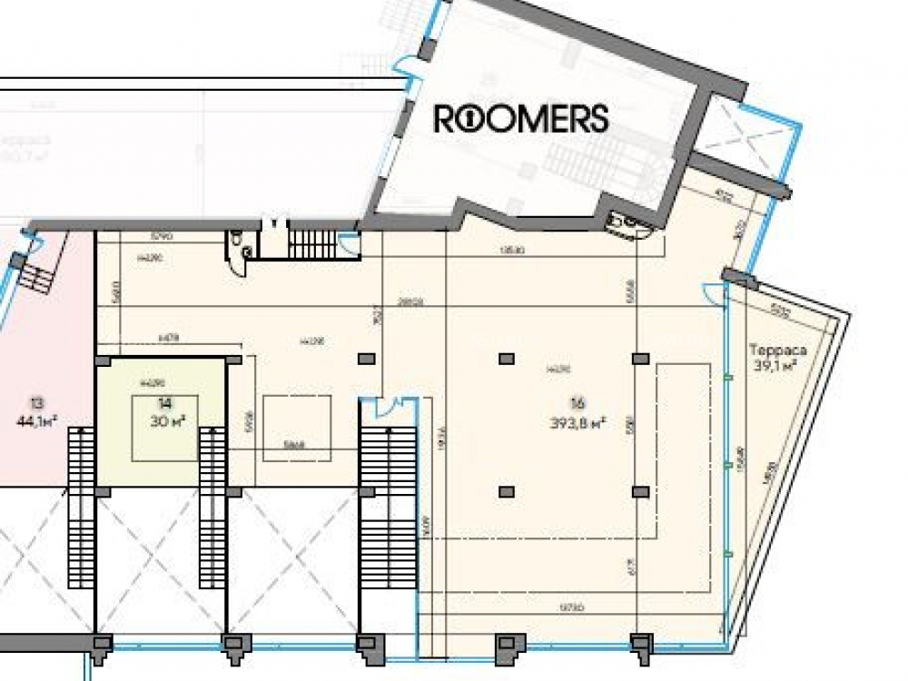 На 1-ом этаже 25,2 кв.м., 2 этаж - 428,8 кв.м. и 39,1 кв.м. - терасса во встроено-пристроенном помещении общей площадью 2 400 кв. м.