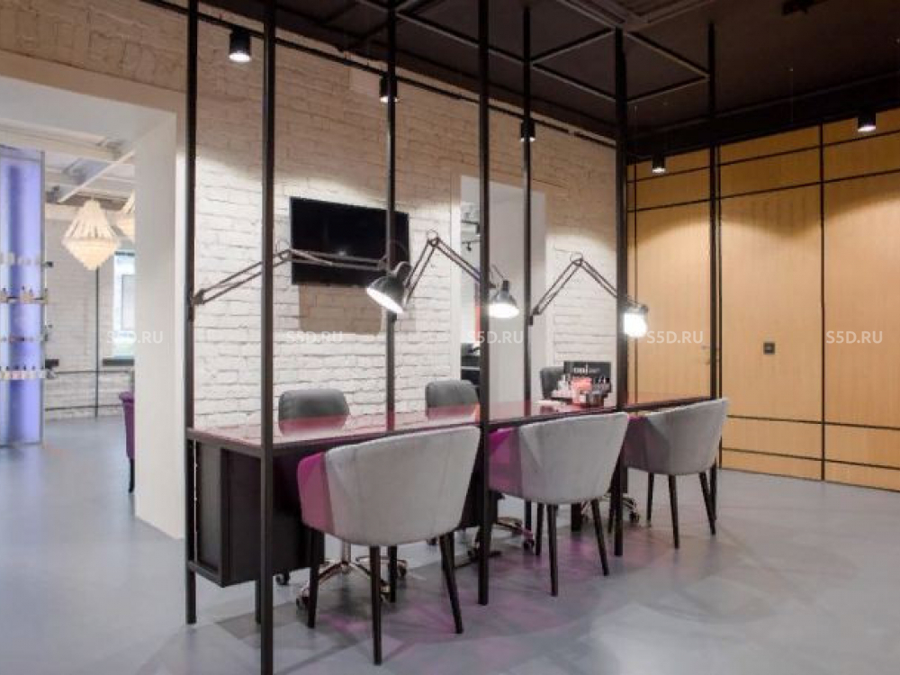 Планировка: открытая планировка рабочего зала, зона ожидания, зона ресепшн, серверная, склад, кабинет директора,