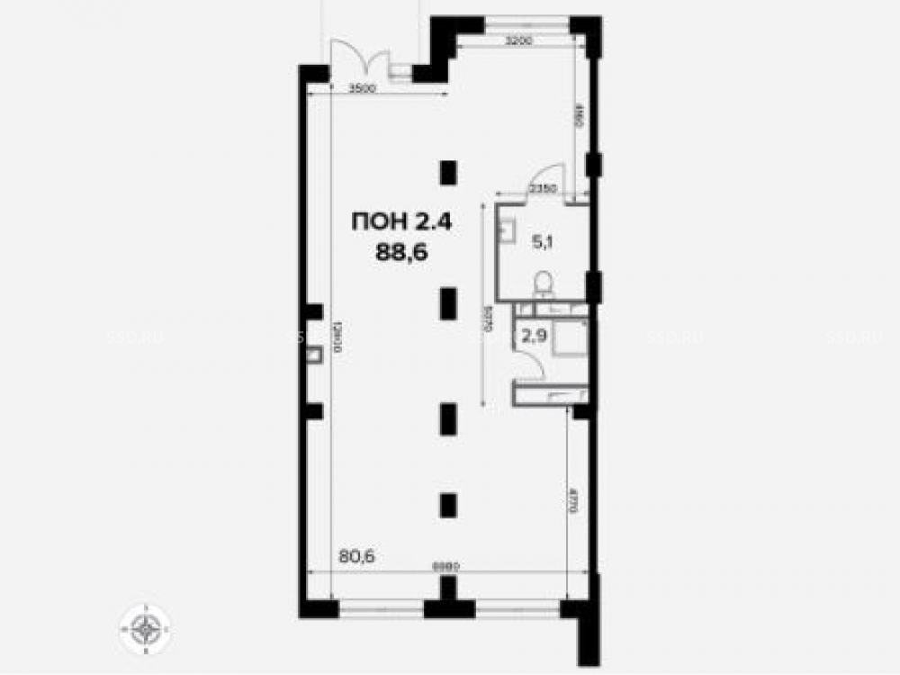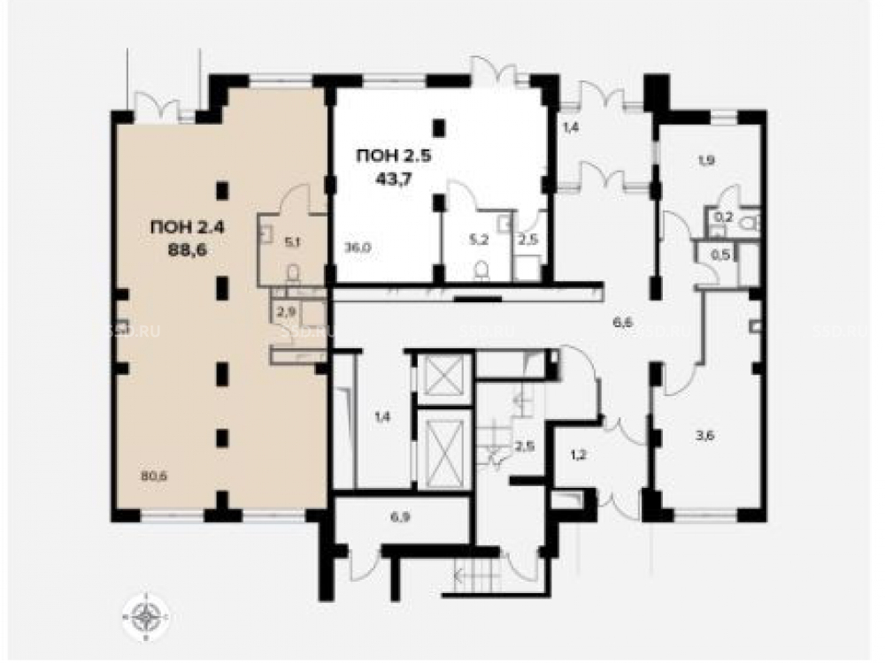 Общая площадь: 88.6 м2