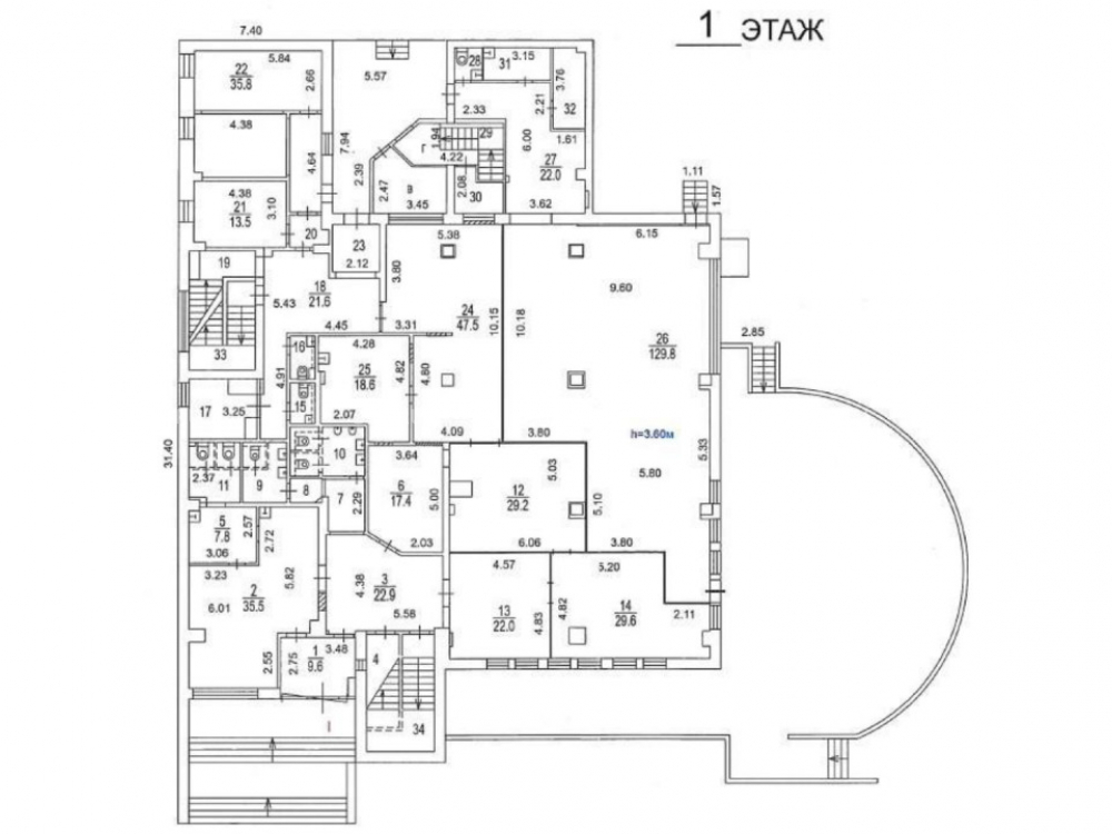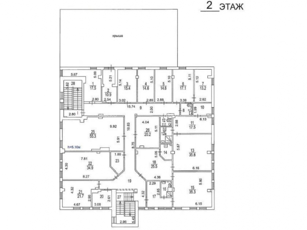 Веранда: 200 кв.м на 1 этаже. Патио: 170 кв.м на 2 этаже. Входы: 9 шт с разных сторон здания. Высота потолков от 2,8 до 5,1 м.