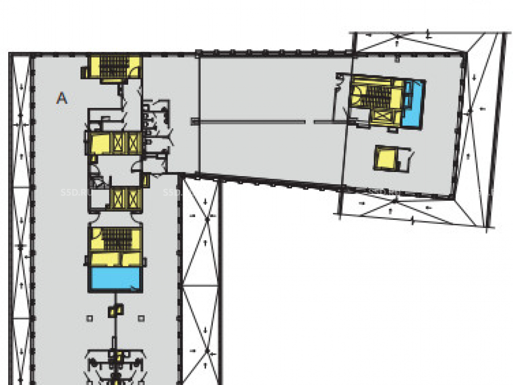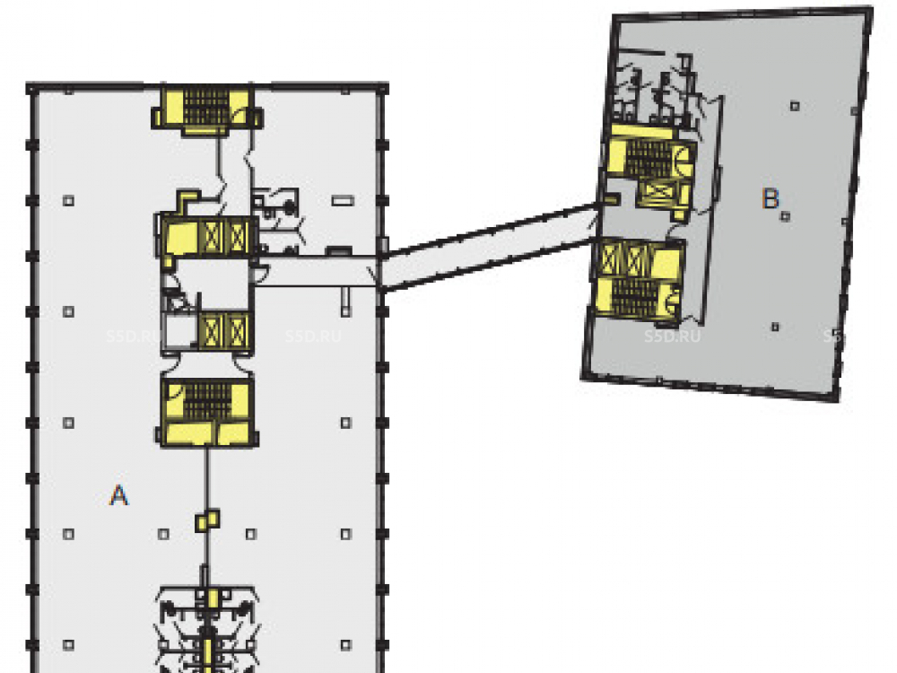Объект состоит из 2-х офисных зданий, объединённых внутренним переходом с отдельными входными группами.