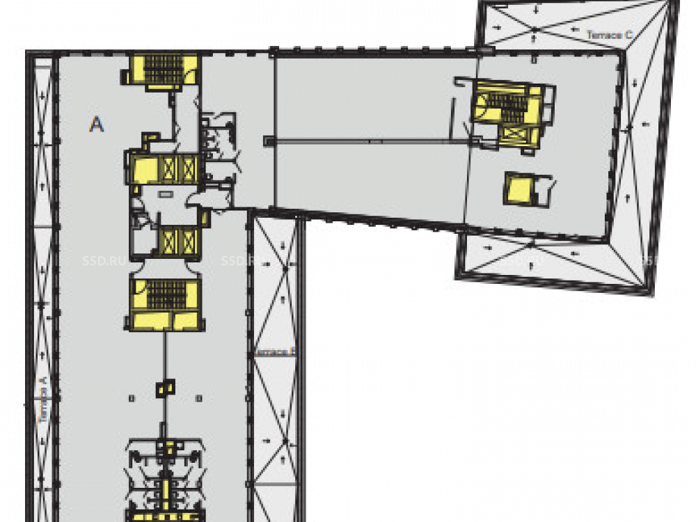 Здание имеет двухуровневый подземный паркинг и восемь надземных этажей.