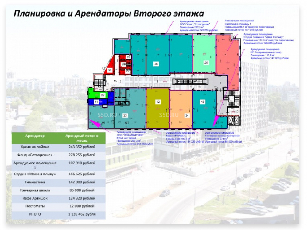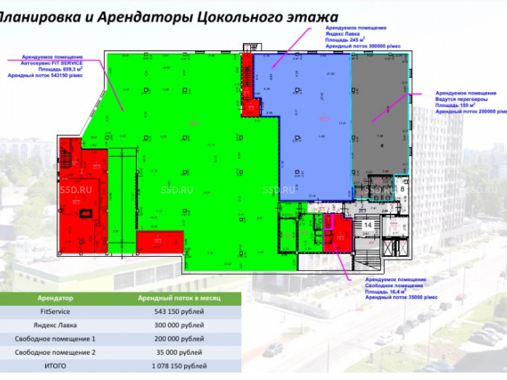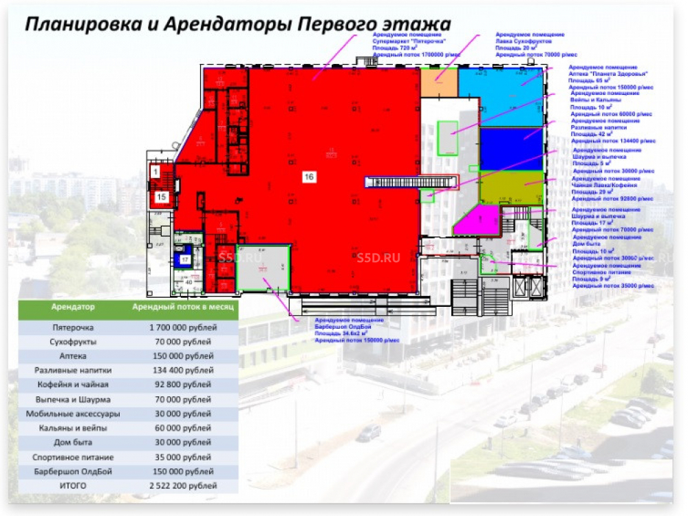 Общий МАП: 5 000 000 RUB (данный МАП является минимальным, при оптимизации арендаторов арендный поток можно значительно увеличить)
