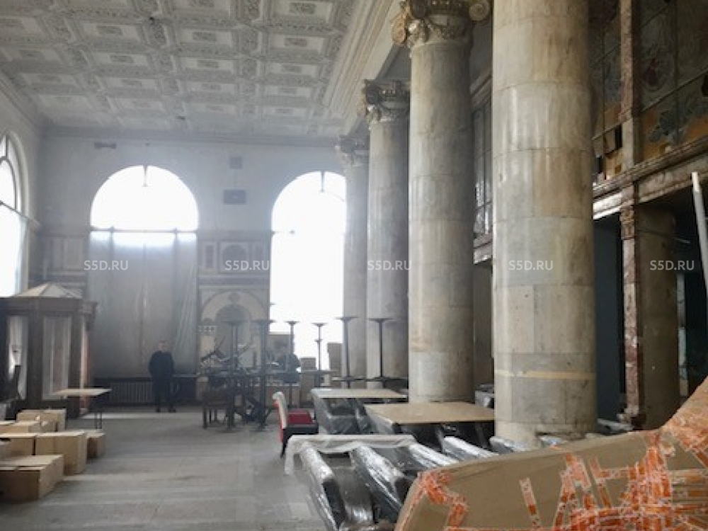 Помещение с огромными витринами, высокими семиметровыми потолками, а также несколькими отдельными входами.