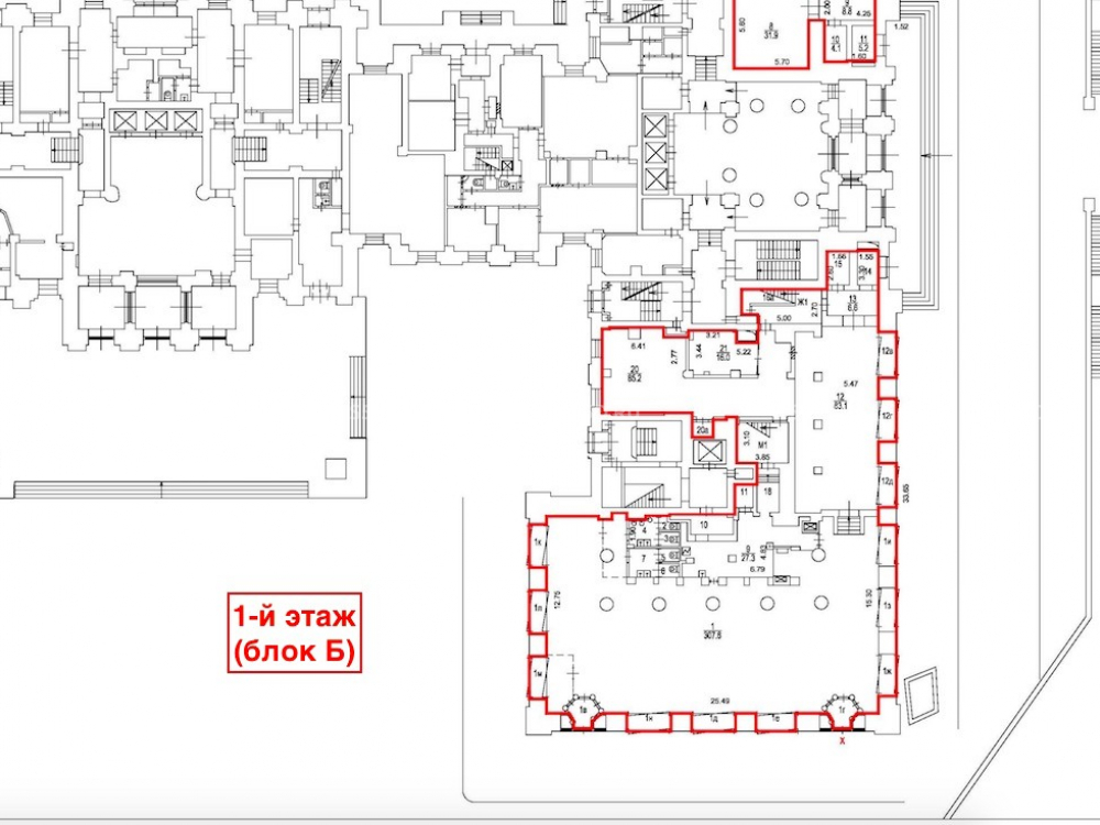 Первый этаж - 621 кв.м. - Антресоль - 189,9 - Складские площади - 218,8 (без подвала)