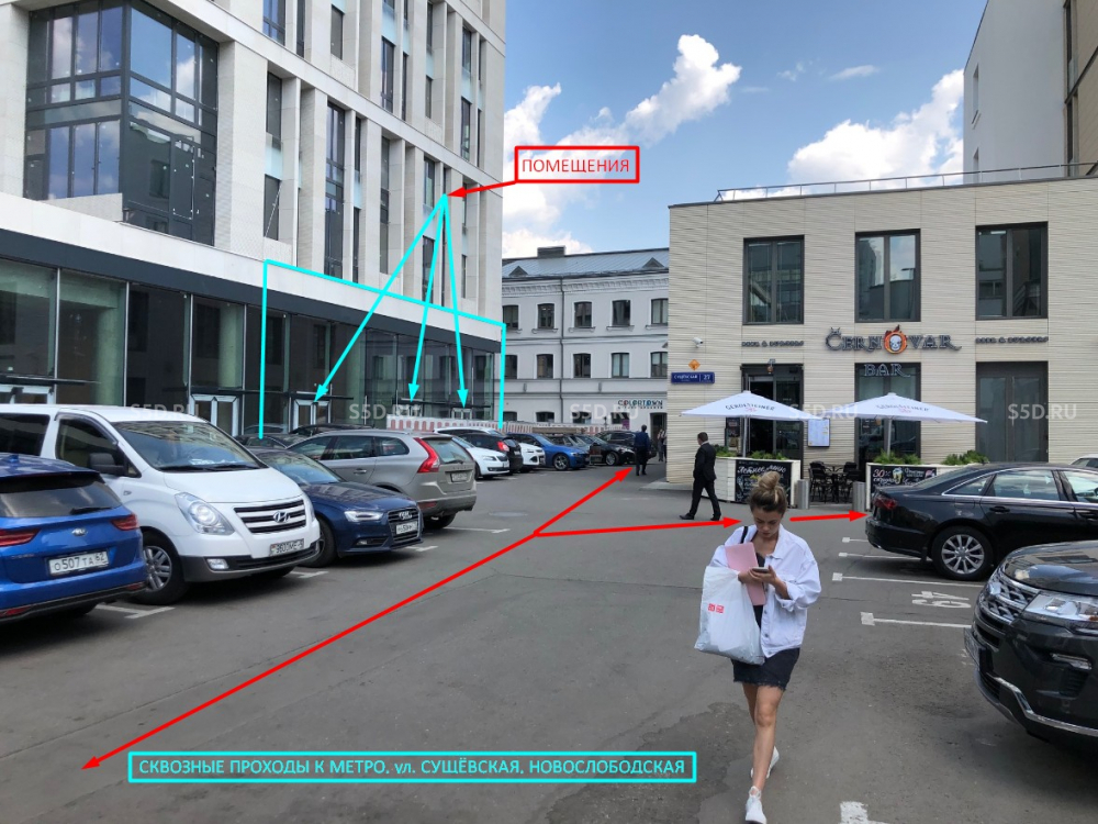Место с высоким пешеходным трафиком. Сквозной проход от метро к ул. Сущёвская. Деловой район. Рядом здание Сбербанка России.