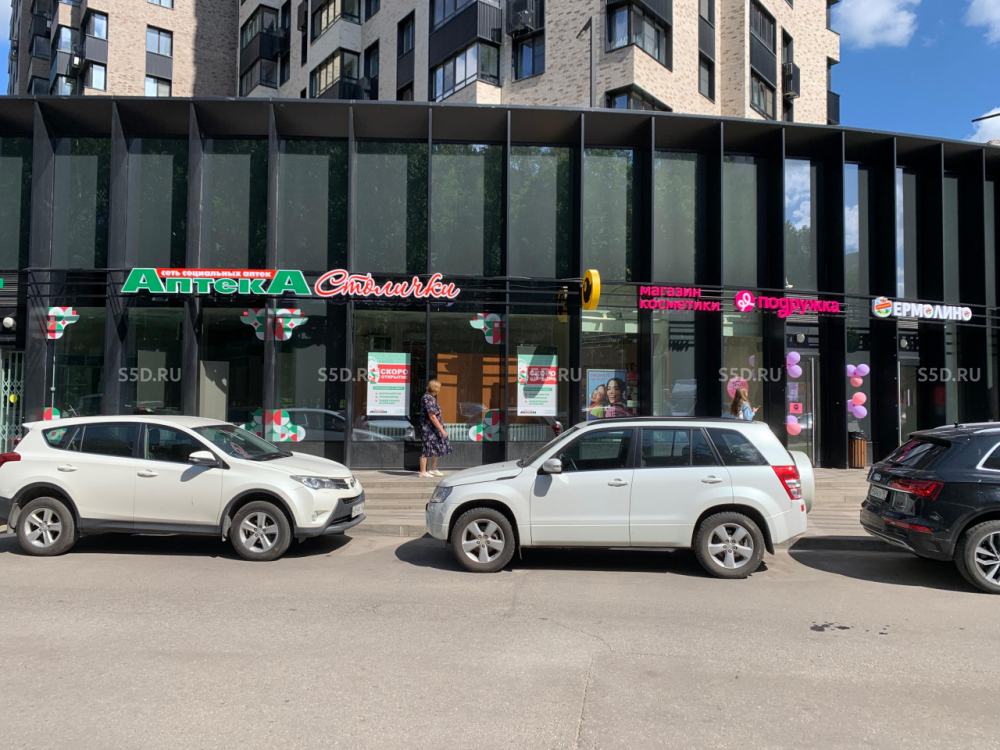 На первых этажах зданий расположены магазины, кафе, аптека, спортзал, отделение банка, салон красоты и сервисные службы.