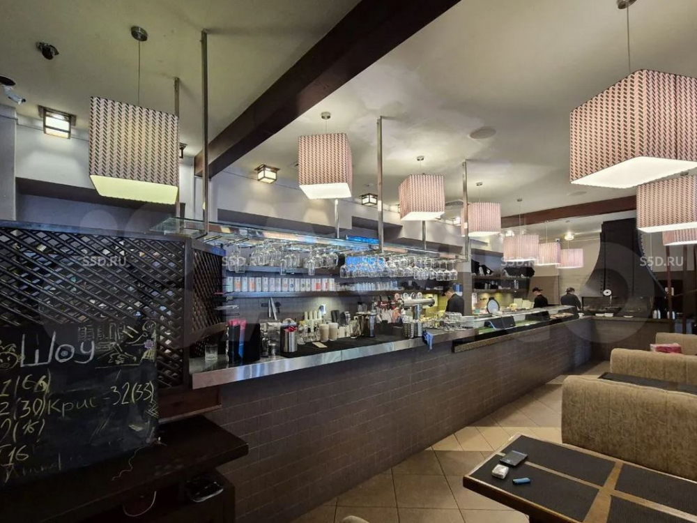 Общая площадь - 753,6 кв. м. 1 этаж зал - 403,6 кв. м., цоколь (кухня) - 320 кв. м. Витринные окна. Два входа - главный вход с первой линии, запасной для разгрузки со двора. Электрическая мощность 162 кВт. Все центральные коммуникации. Высота потолка - 4,2 м. Парковка перед зданием.