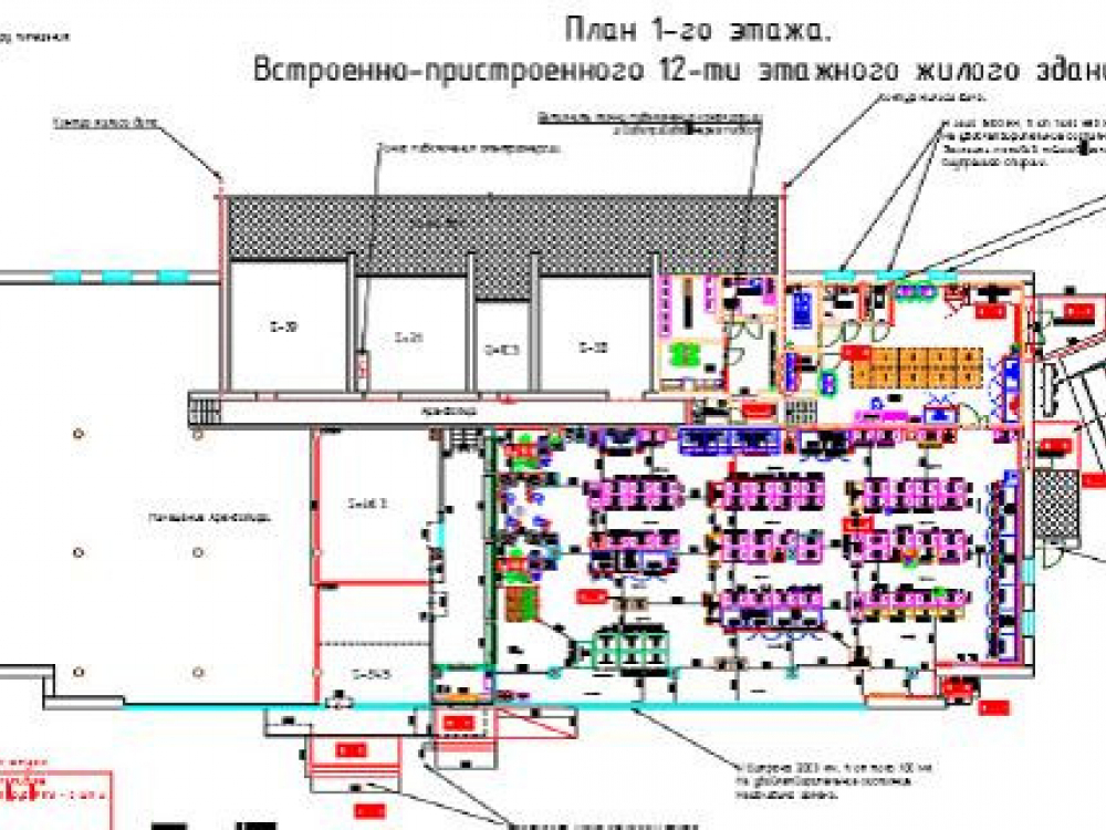 Общая площадь - 1 038.4 кв.м., во встроенно-пристроенной части жилого 12-ти этажного дома.