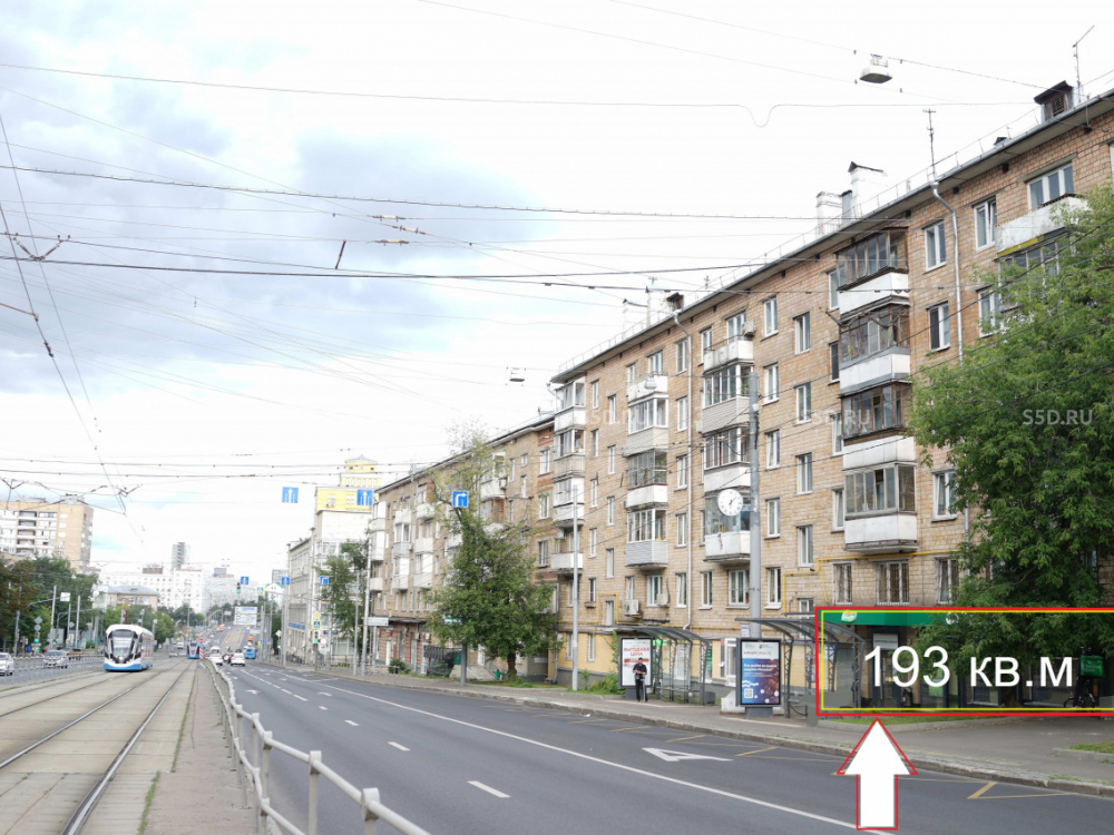 Общая площадь 192 кв.м; цокольный этаж с полноценными окнами на фасад, первая линия, отдельный вход с улицы + разгруз-погруз со двора. Потолки – 2.9 - 3 м. Отдельный канал вытяжки под общепит. Выделенная мощность электроэнергии 65 кВт. Все коммуникации центральные. Вытяжка системы Ятаган. Помещение с ремонтом. Умеренный пешеходный, интенсивный автомобильный трафик. Остановка общественного транспорта у входа в помещение. Дом не входит в программу реновации. В настоящее время помещение занимает арендатор Улыбка радуги.