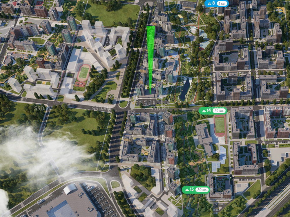 Введен в эксплуатацию и заселен. Концепция «двор без машин» и парковое благоустройство территории создает условия для активного пешеходного трафика.