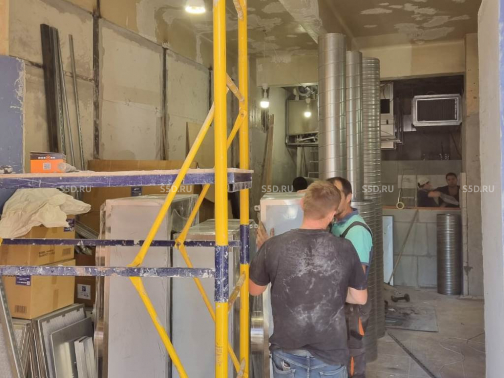 Вывеска на фасаде, с ремонтом от арендатора. Воздуховод на кровлю 30×60 сантиметров, 100 кВт