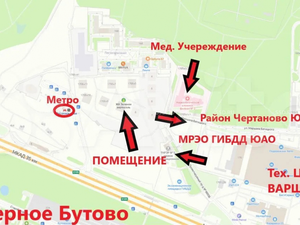 Продажа помещения свободного назначения, адрес: г. Москва, Варшавское шоссе, 170Ек8. Первая линия домов, станция метро "Лесопарковая" от метро "Аннино" 10 минут пешком.