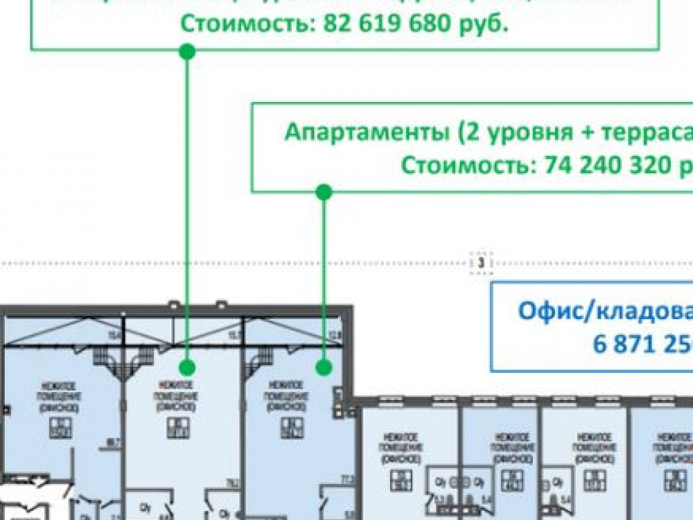 Стоимость за все помещение: 82 619 680 рублей, включая НДС.