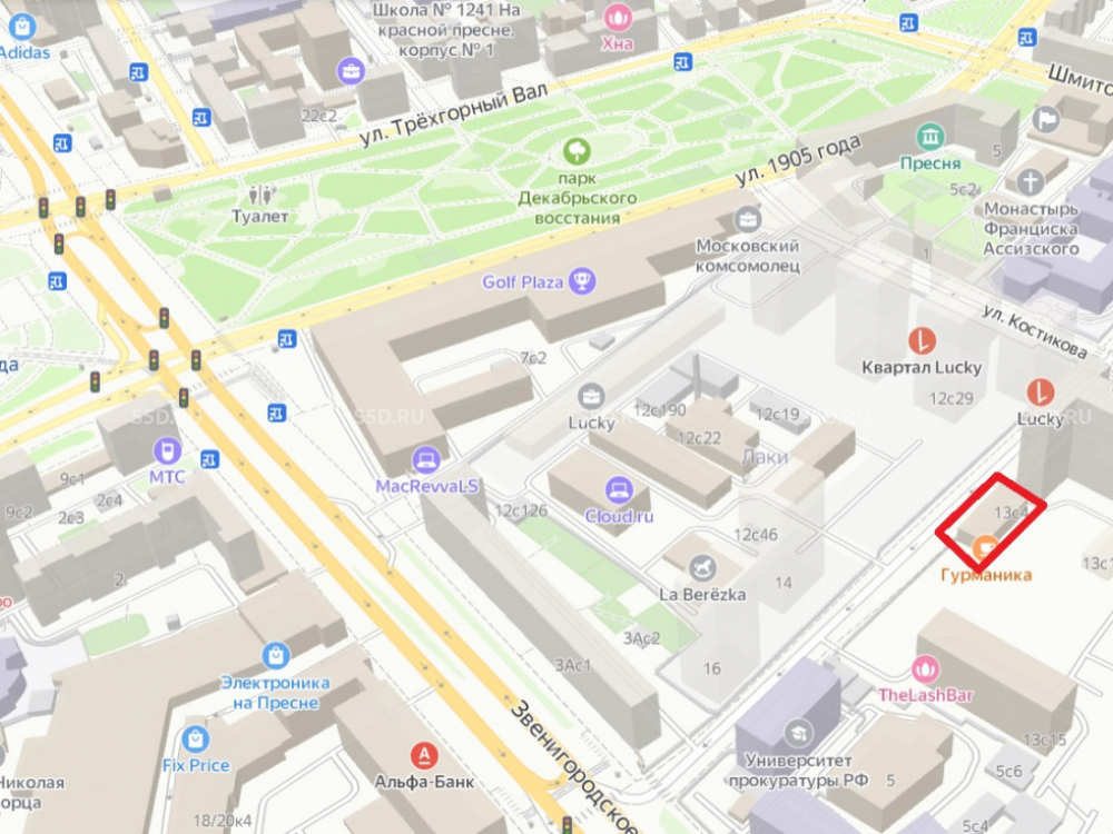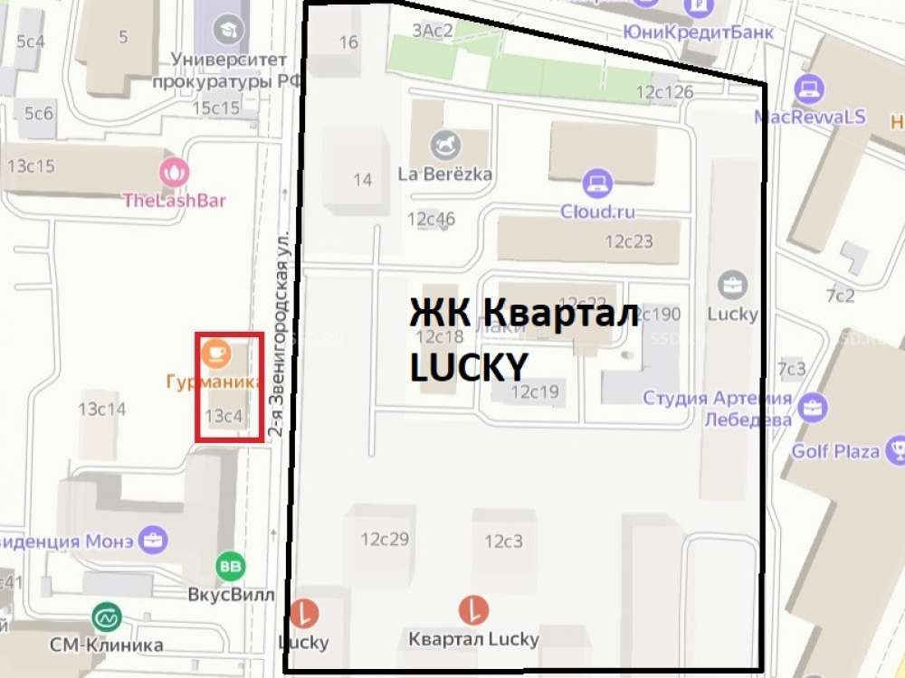 Окружение: Крупный сложившийся жилой массив Пресненского района, интенсивный пешеходный трафик. Напротив - ЖК "Квартал Lucky" (это социокультурный кластер с современными жилыми домами, историческими зданиями и собственными парковыми зонами, премиум класс, новый центр притяжения состоятельных жителей Москвы), ЖК Резиденция "Монэ" так же премиального класса, а так же поблизости ЖК Redside, ЖК Eleven, ЖК Трилогия, ЖК Шмитовский 16. В шаговой доступности бизнес-центры "Лаки", "Краснопресненский", "Marr Plaza". Торговое окружение - Винотека Simple Wine, Кафе "Караваевы", Гастроном "Яндекс Лавка", Медклиника "СМ", Магазин "ВкусВилл", Аптека, Салон Виски и Сигар, Салон красоты, Банк и др.