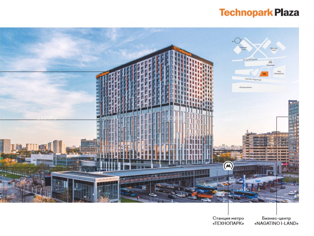 МФК «Technopark Plaza» - многофункциональный комплекс и пятый проект в сети апарт-отелей YE’S, успешно развивающийся в Москве и Санкт-Петербурге. Объект построен (разрешение на ввод объекта в эксплуатацию от 30.12.2021 г.) у станции метро «Технопарк» и объединяет в себе торговую галерею, бизнес-центр, а также апартаменты.