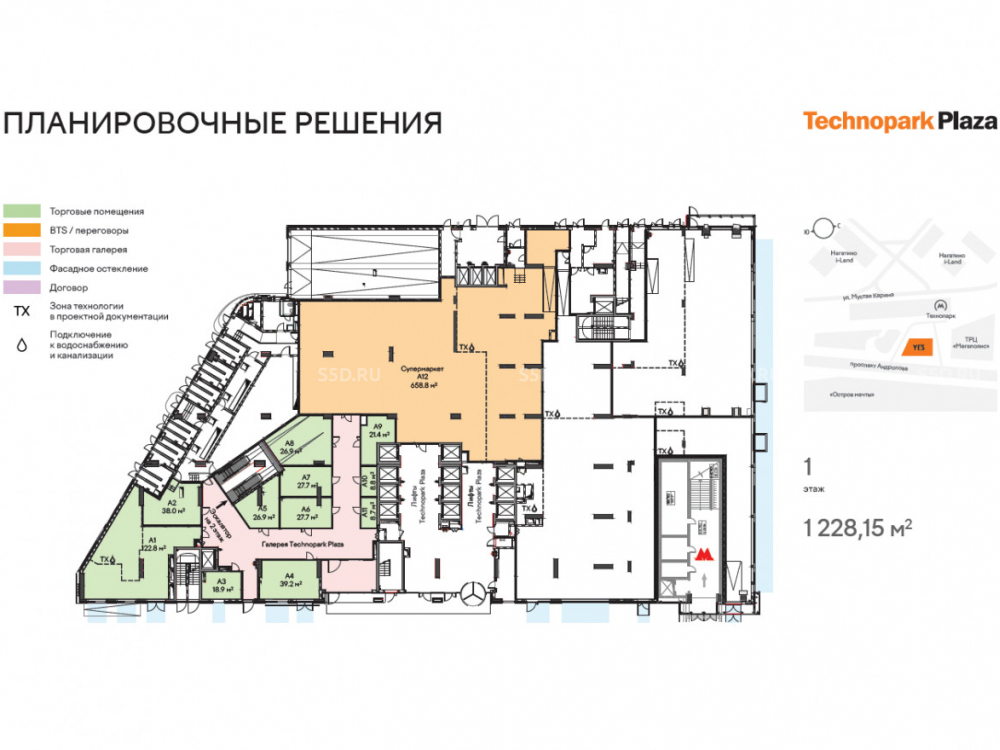 Продажа торговой галереи площадью 4425 кв.м в составе МФК «Technopark Plaza».
