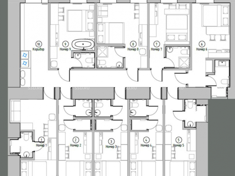 помещение площадью 173,7 м2, 9 номеров в чистовой отделке, электронная система заселения, умный дом, отделка под ключ: меблировка, бытовая техника. ВРИ 4.7
