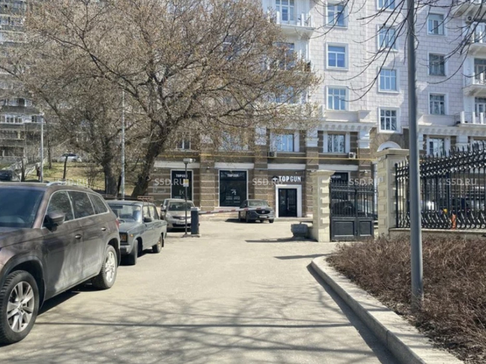 1-ый этаж 9-этажного сталинского жилого дома, общей площадью 76.7 м2, вся площадь в одном уровне, высота потолков 4.3 метра. Зальная планировка. (план по запросу). Имеются все необходимые городские коммуникации, ГВС, ХВС, отопление. Электрическая мощность 15 кВт. Большая внутридворовая парковка.