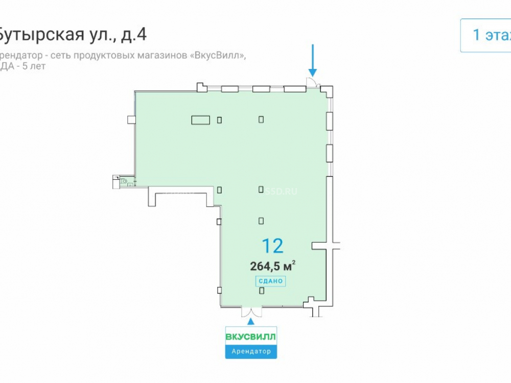 САО, Москва, Бутырская, д.4 - 264,5 м2 / Продажа торгового помещения