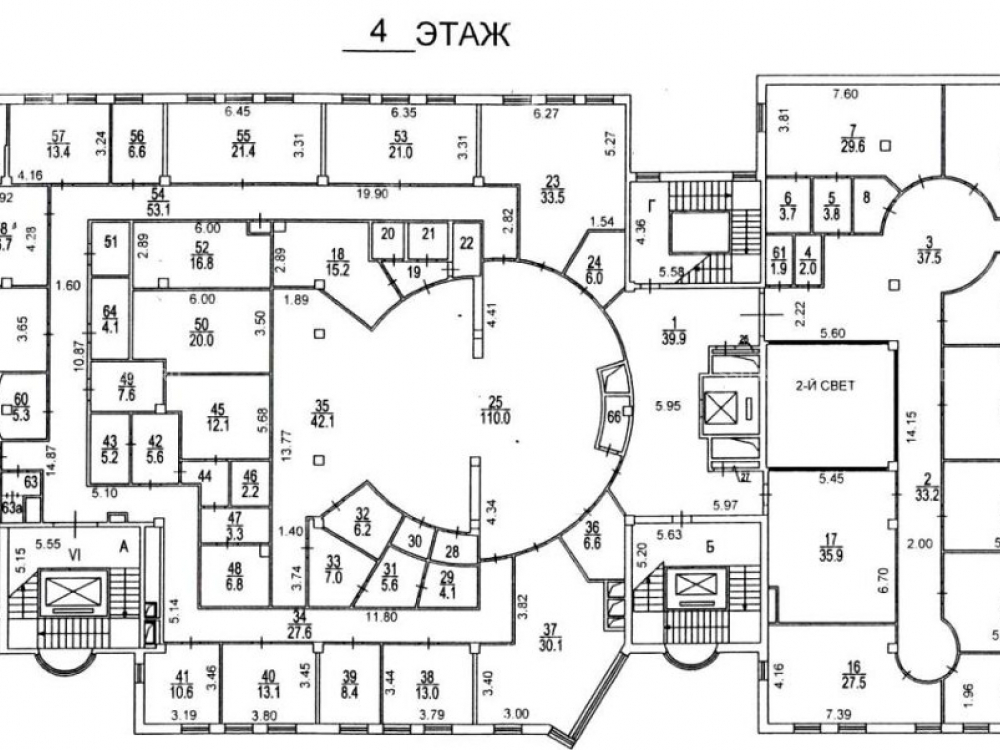 Офисное помещение на 4-х этаже 6-ти этажного БЦ класса В+.